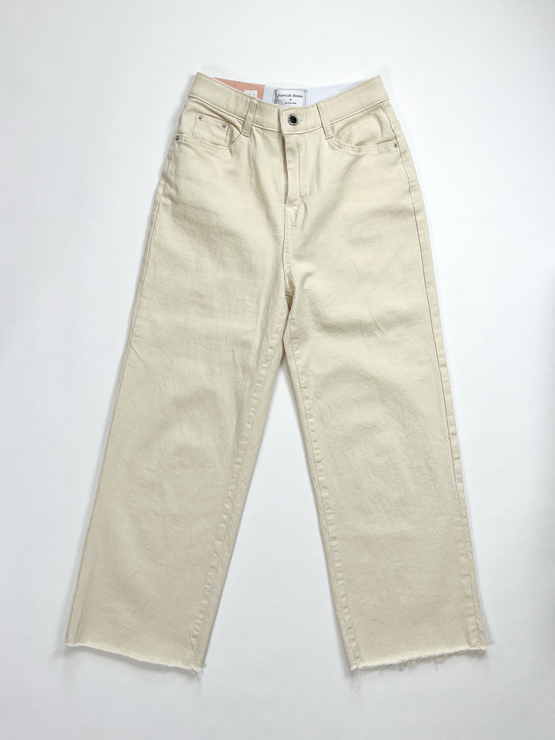 Mycket stretchiga och bekväma jeans i ankellängd. Byxorna är raka och breda i passform med hög midja.