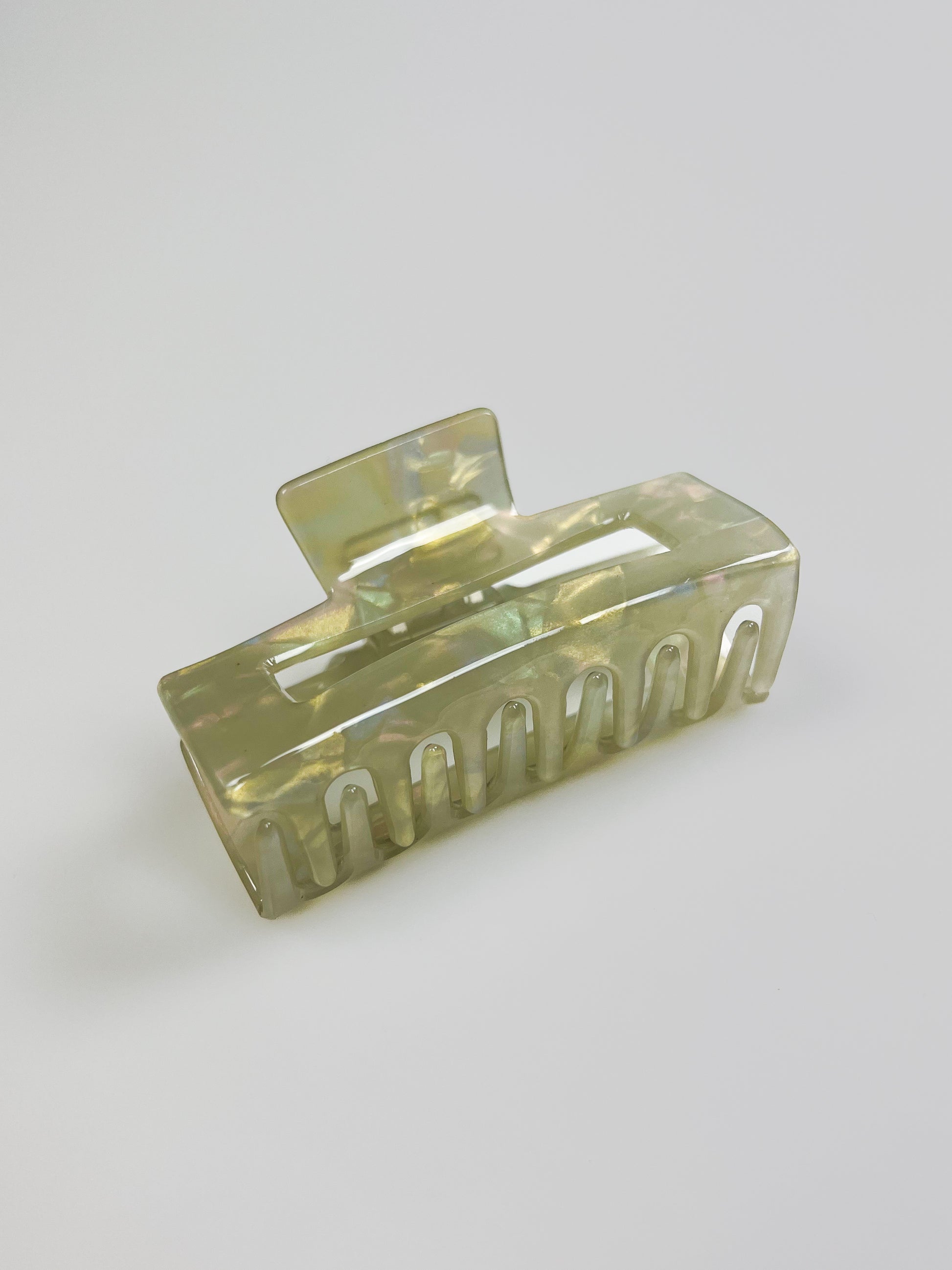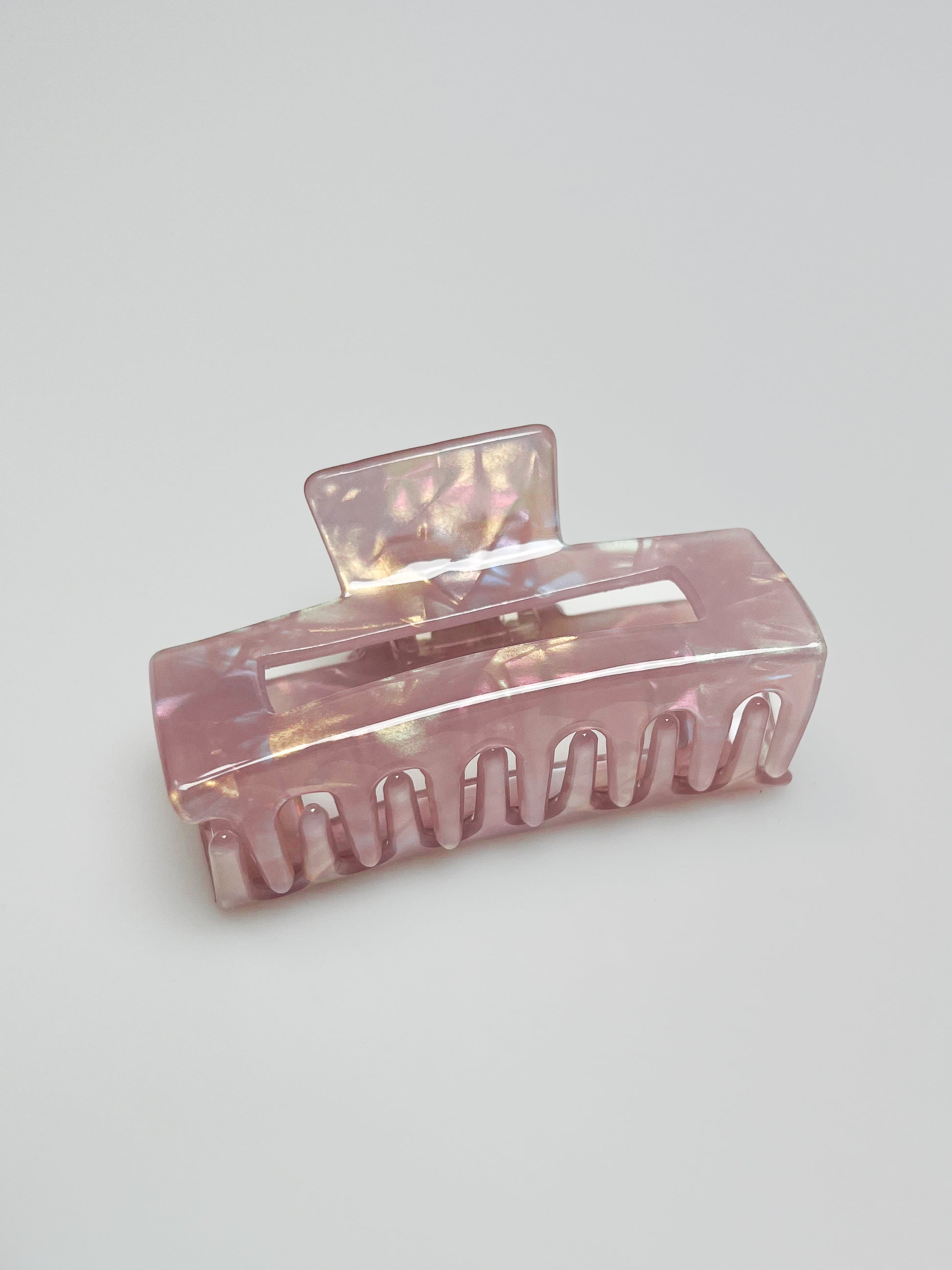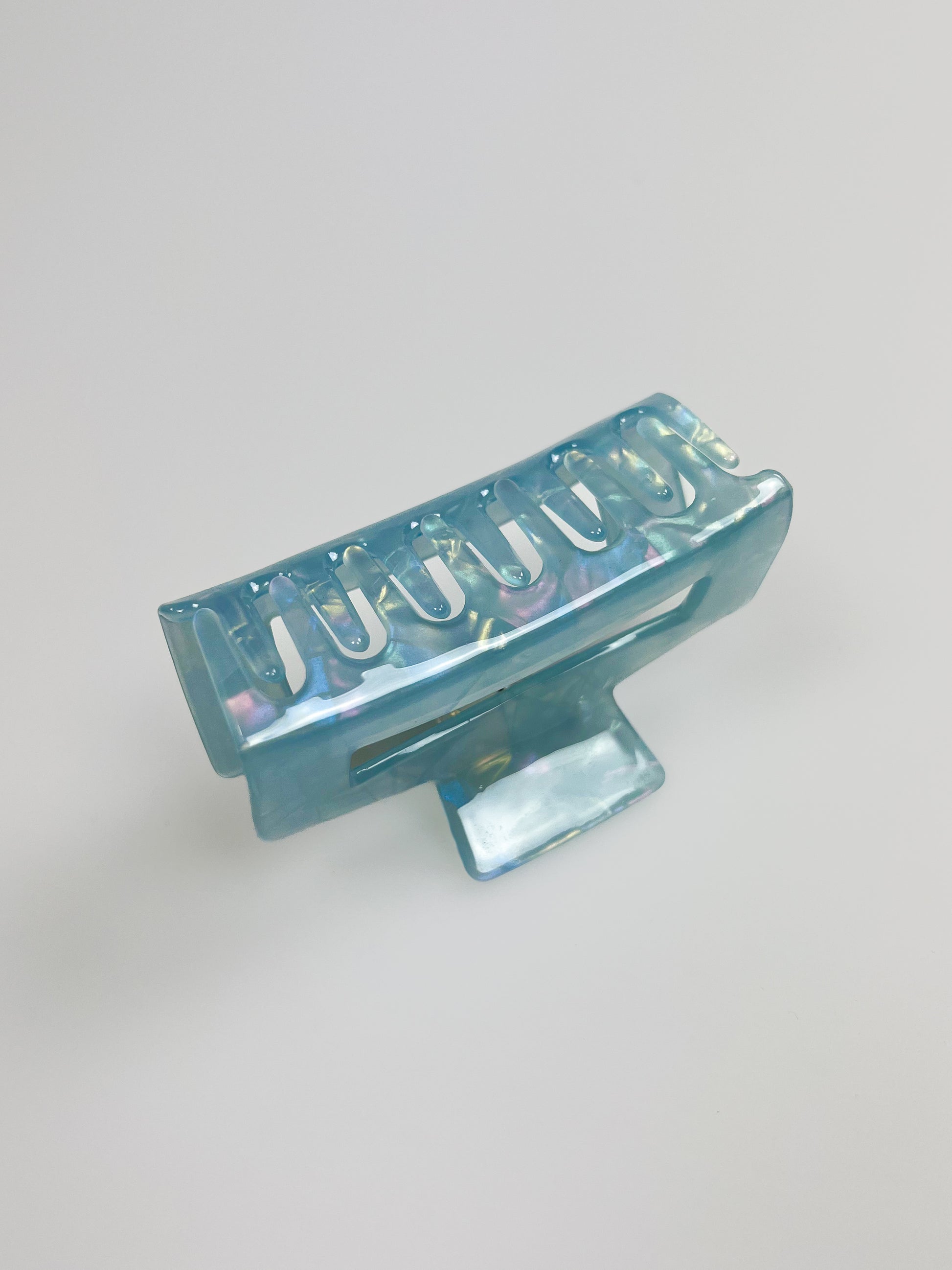 En mellanstor hårklämma som har en holographic utseende med marble mönster. Finns i tre färger.