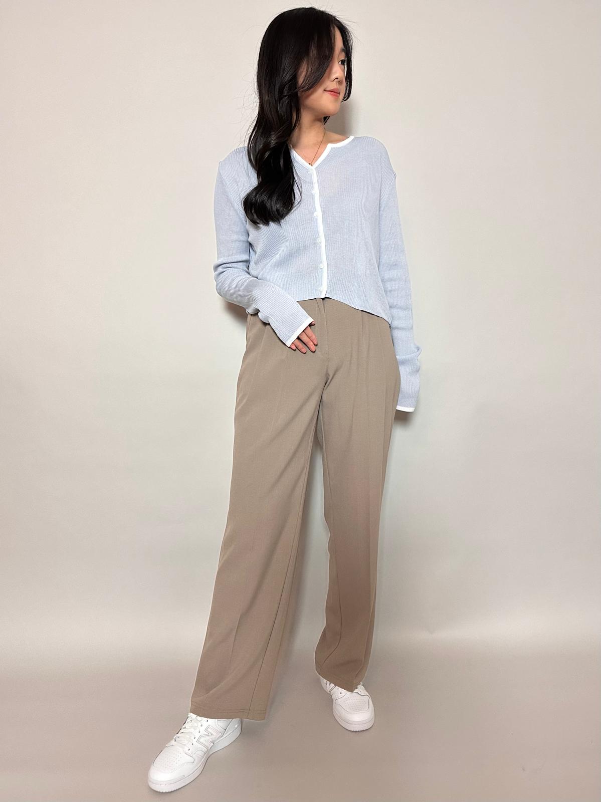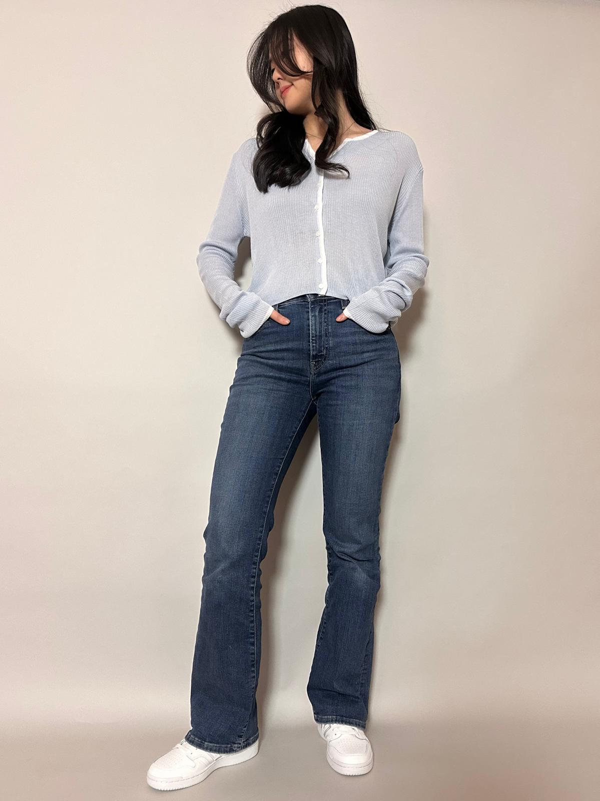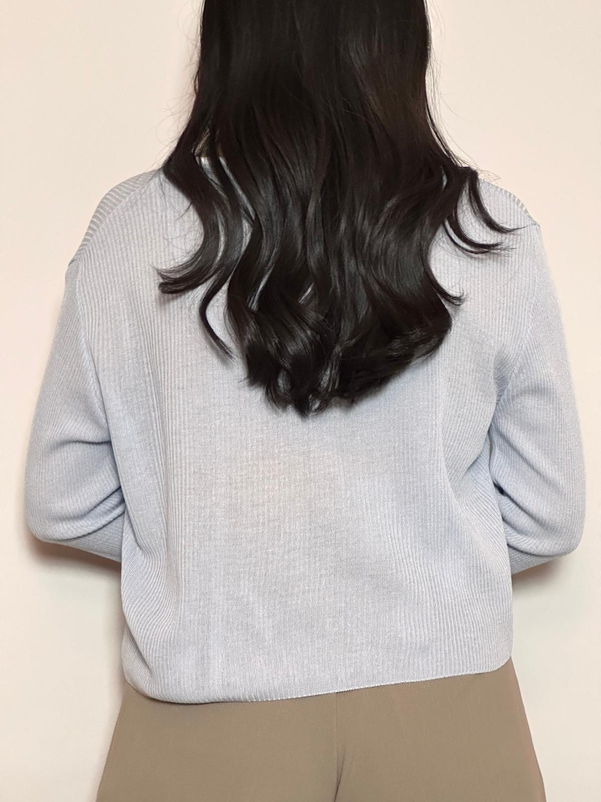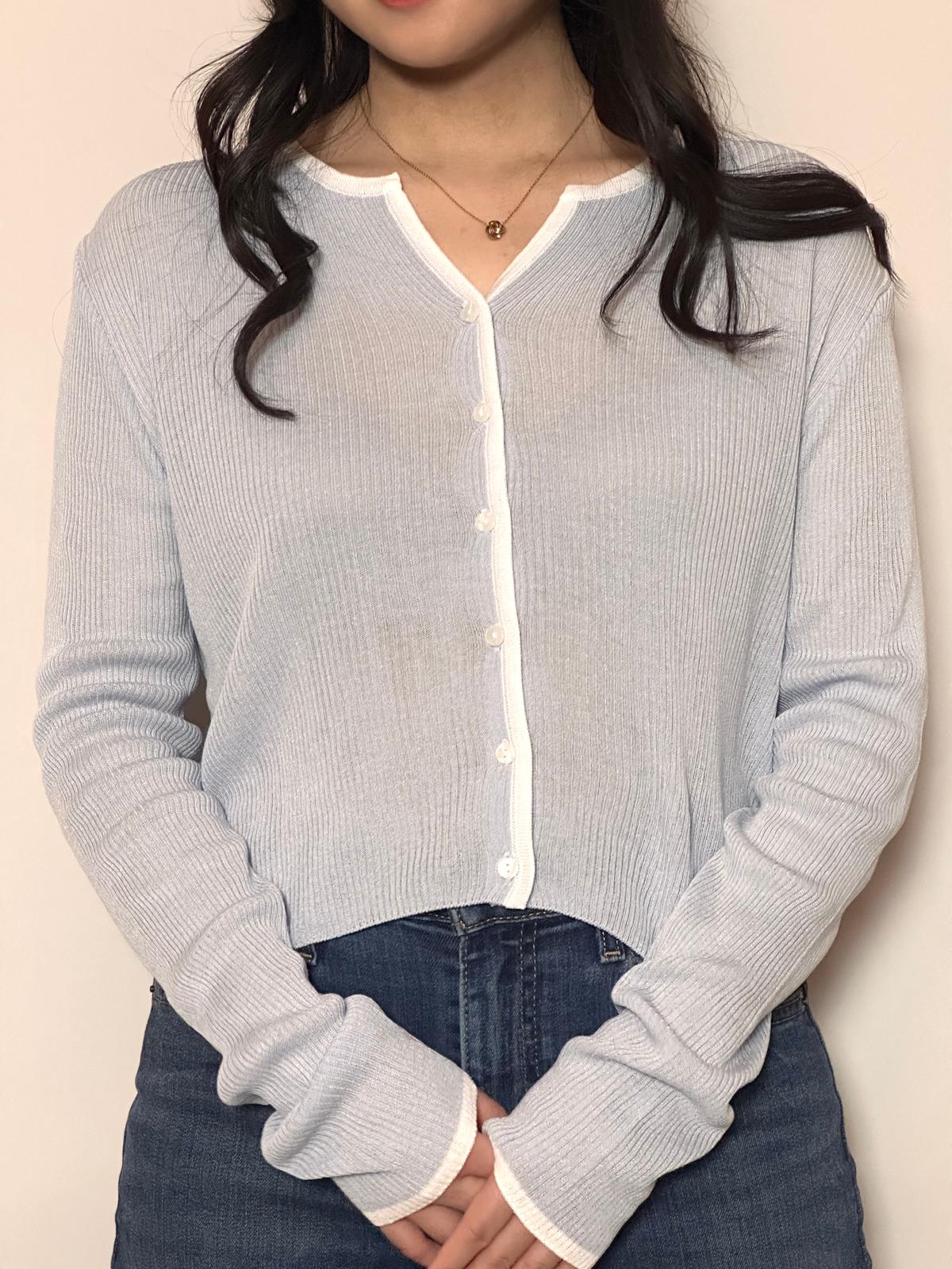 En fin långärmad stickad kofta med vita knappar. Materialet är tunt och passar perfekt till våren. Koftan finns i två färger blå och beige. Den finns endast i storlek onesize och kan passa storlekarna XS och S.