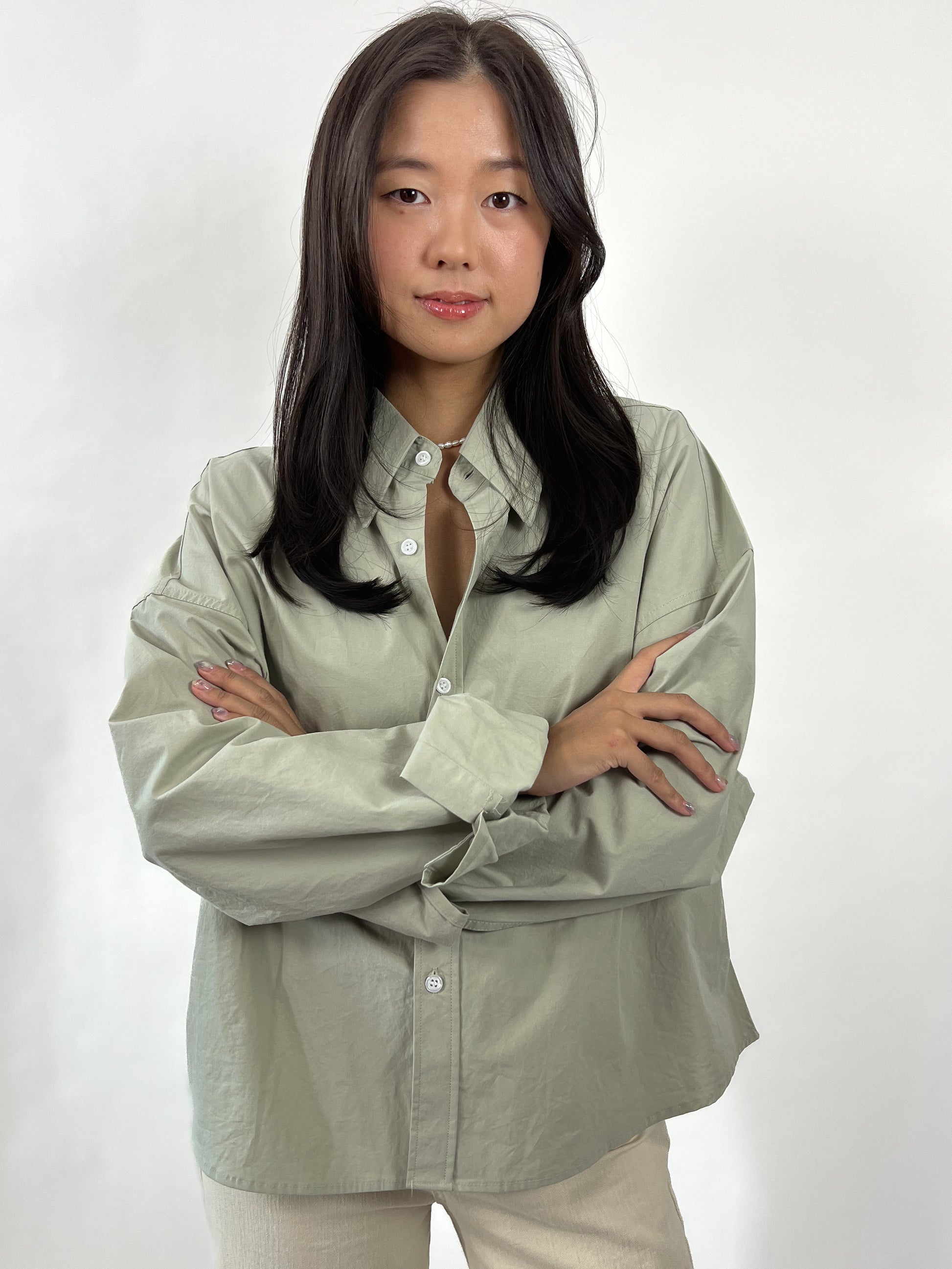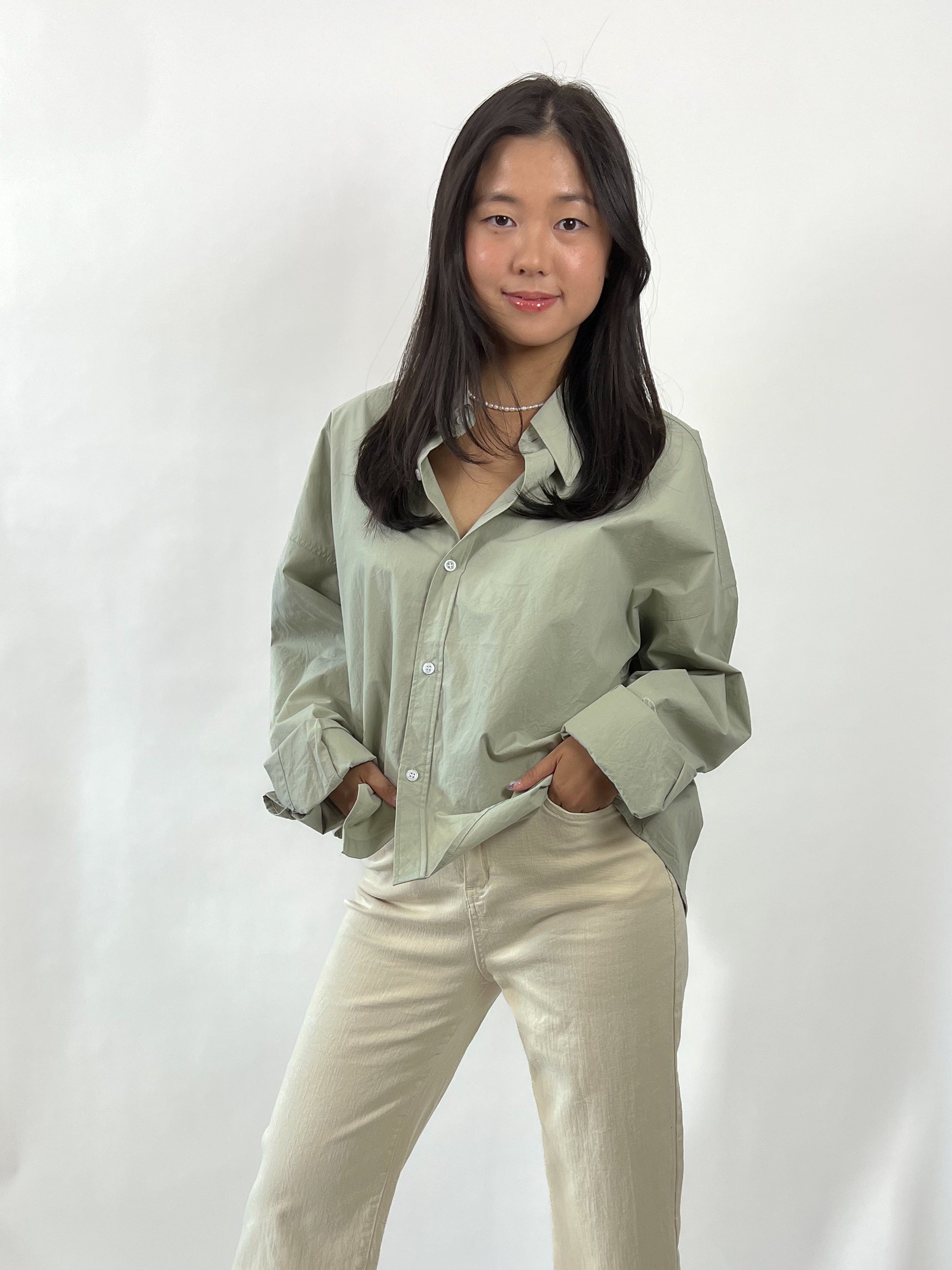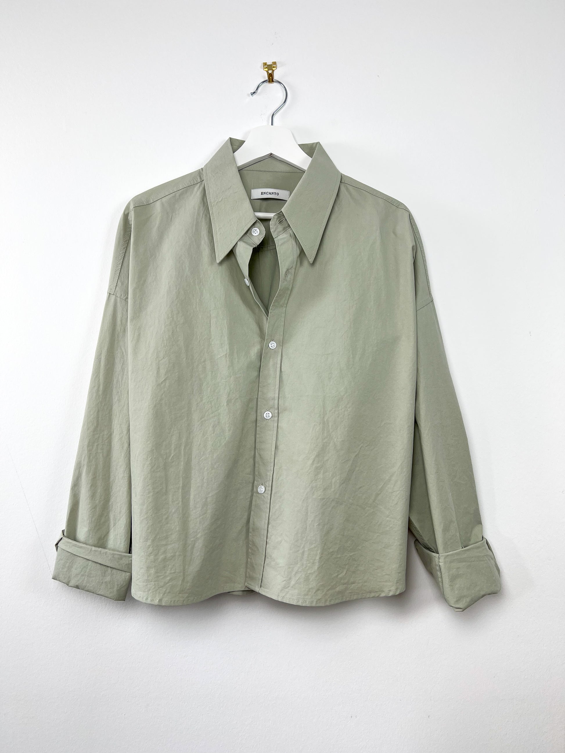 En oversized skjorta i en härlig mintfärg. Skjortan har krage och vita knappar.