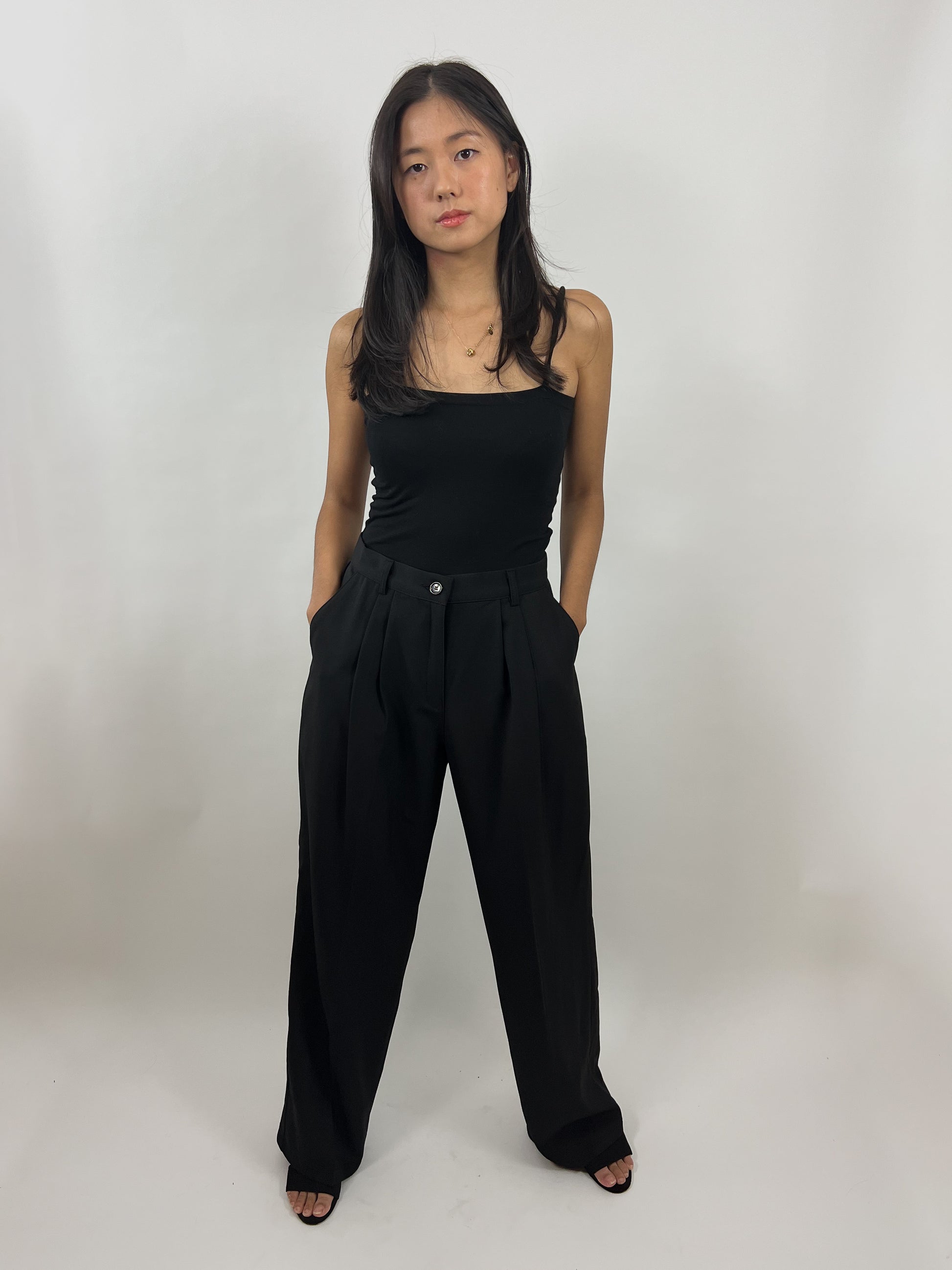 Ett par fina slacks som sitter perfekt i kroppen. Byxorna är sköna att gå i och har raka samt fina veck. Denna finns i beige och svart.