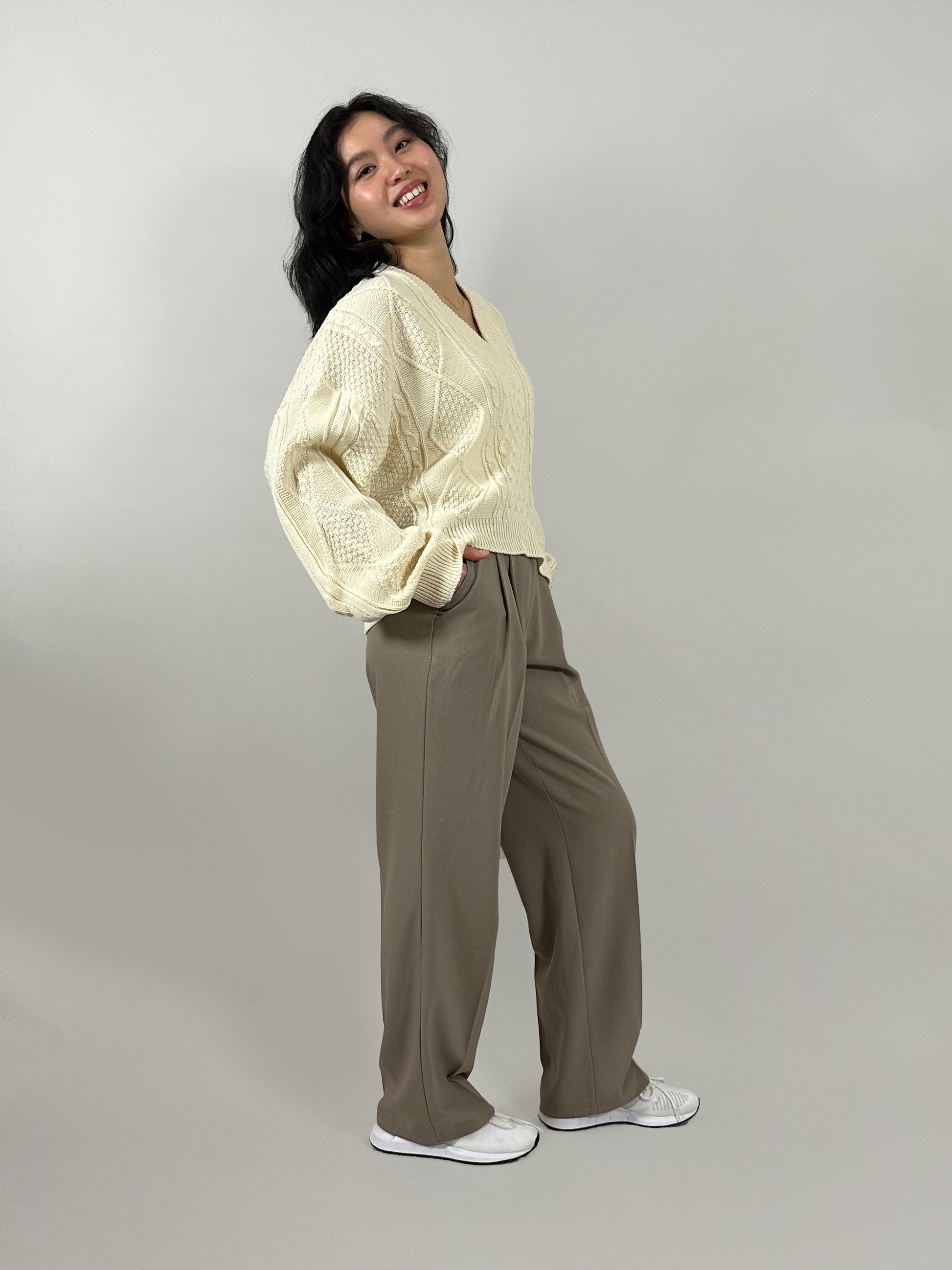 En varm stickad tröja med v-neck och långa ärmar i färgen off white. Kommer även i färgen blå.