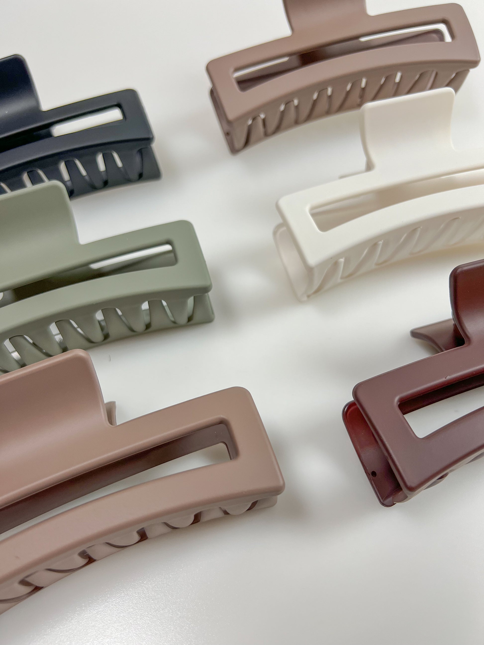 En stor rektangulärformad hårklämma i snygga matta färger. Perfekt för dig som har långt och tjockt hår.